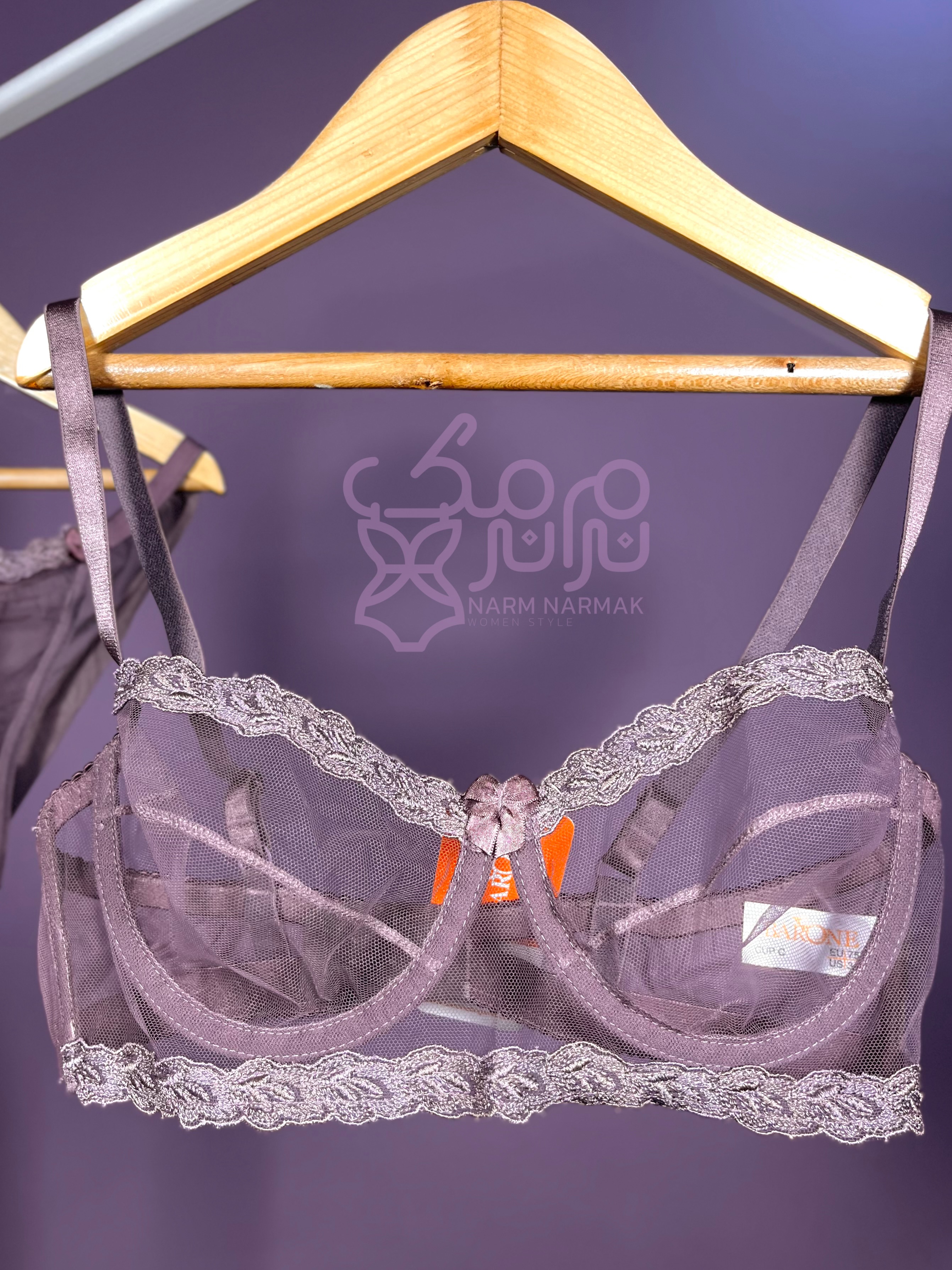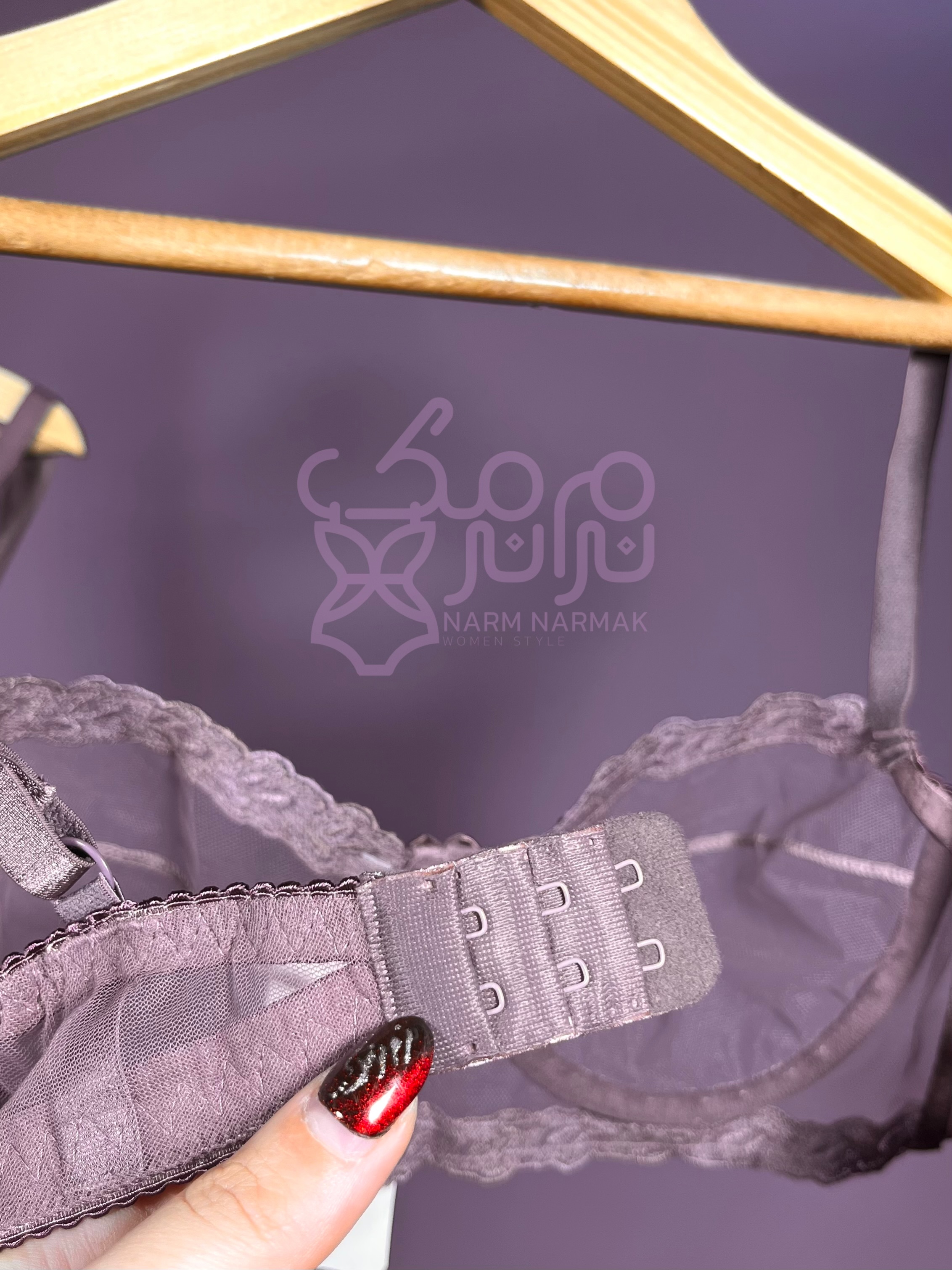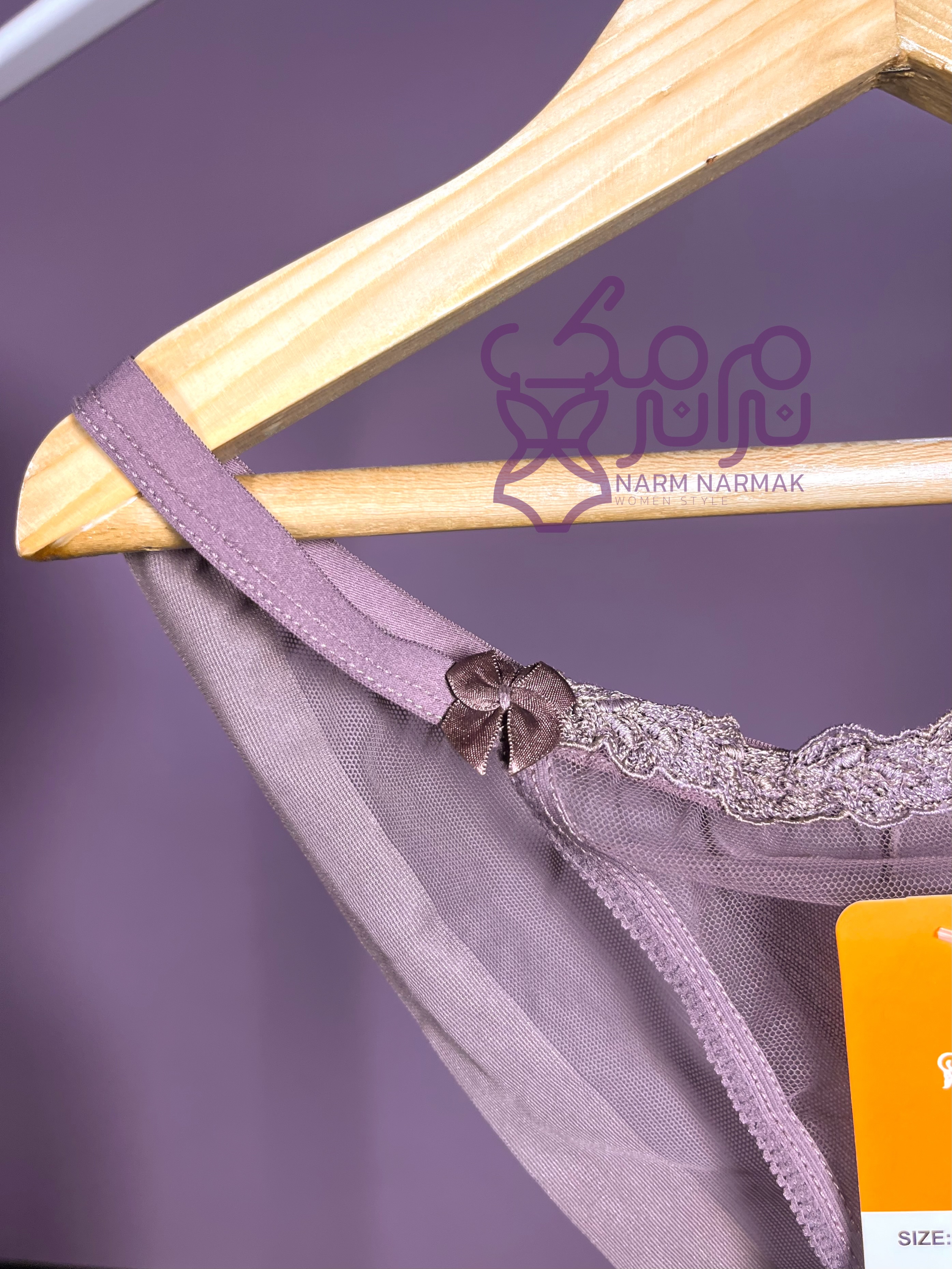 ست شورت و سوتین بدن نما تورشیشه ای با رنگ شکلاتی که در بدن بصورت بیرنگ نمایش داده میشود جلوه بسیار لوکس و سکسی بر بدن نمایان میکند.