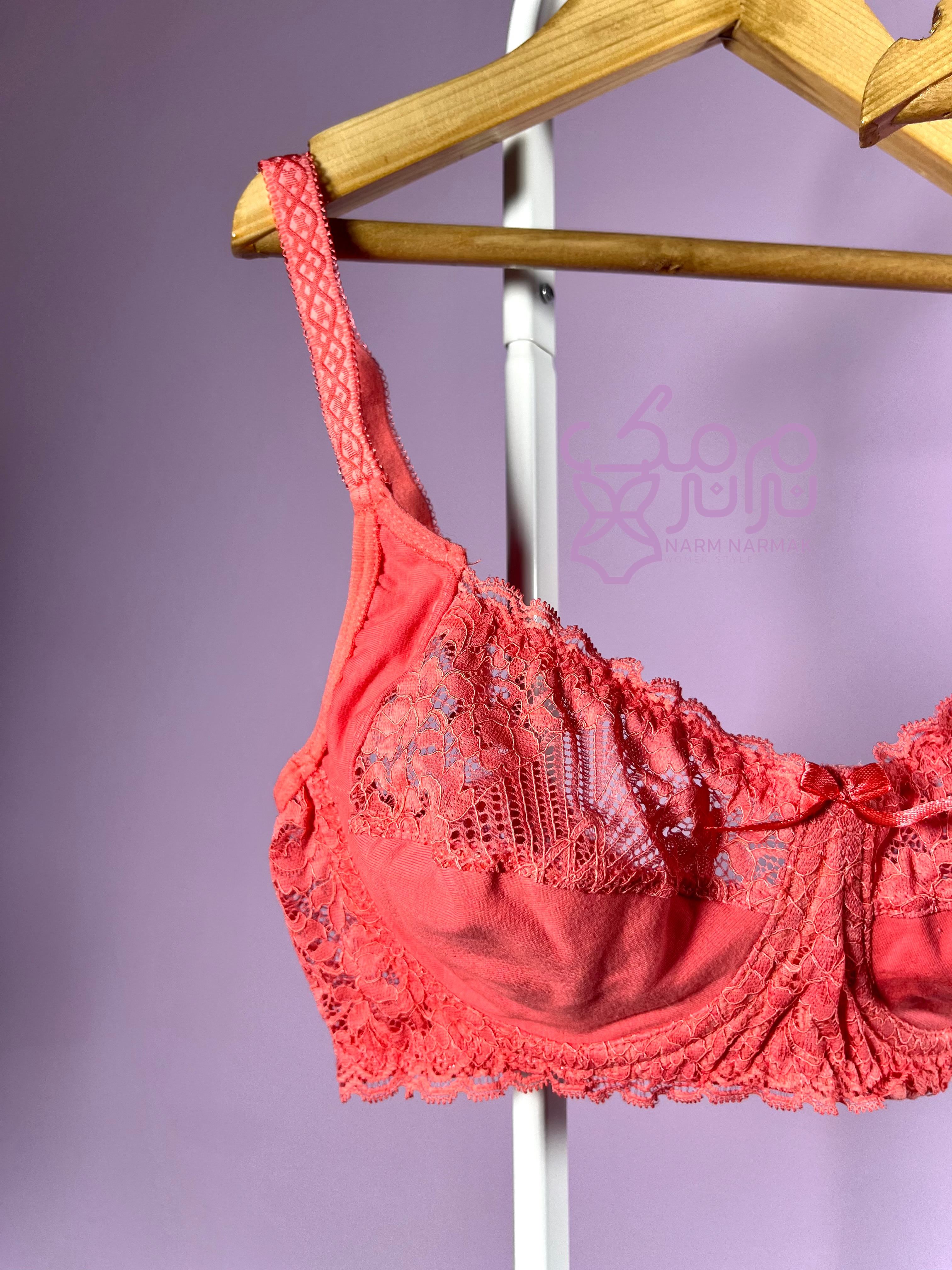 جزئیات سوتین نخی صورتی  نرم نرمک