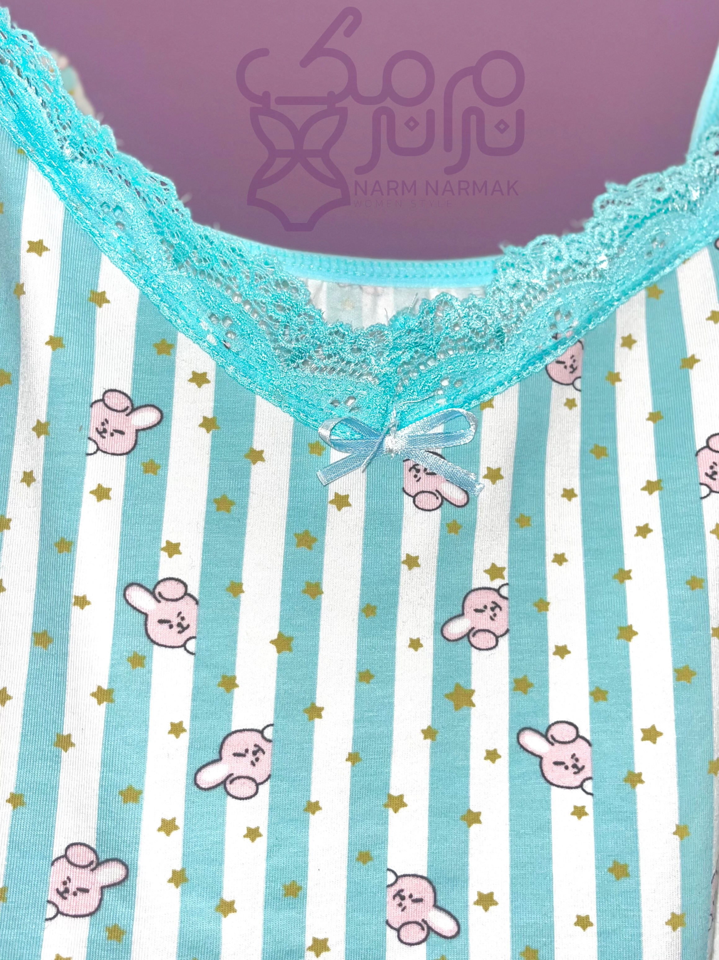 اگه دنبال یه ست خنک و جمعوجور برای تابستون هستی که هم راحت باشه هم خوشگل، این تاپ و شلوارک توردار واقعاً گزینهی خوبیه. کیفیت پارچهش کاملاً تنفسپذیره و توری که براش کار شده کاملا لطیفه اصلاً پوست و اذیت نمیکنه. ظاهر راهراه و رنگ آبیش هم باعث شده خیلی خوشپوش باشه.